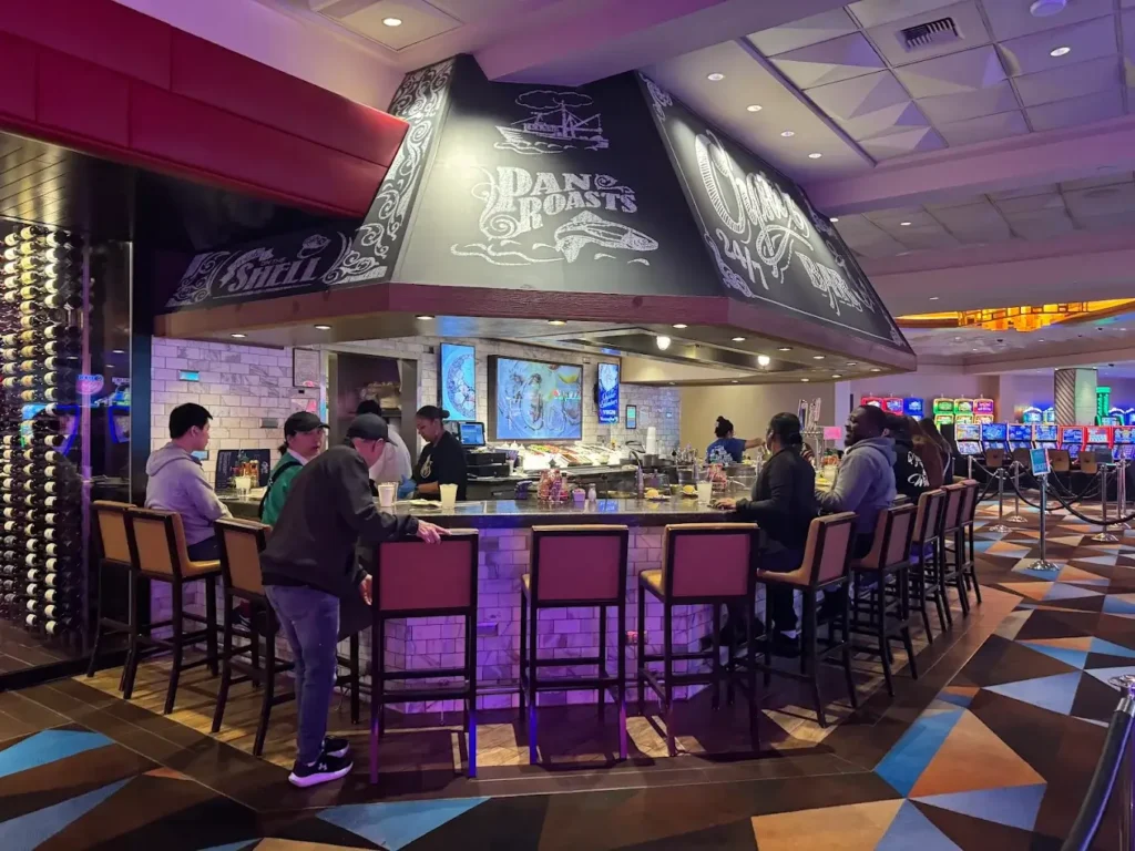• The Oyster Bar (24/7) — A cult-favorite seafood counter serving Cajun-Creole pan roast. 18 seats, no reservations, iconic flavor that’s become a Vegas staple.
